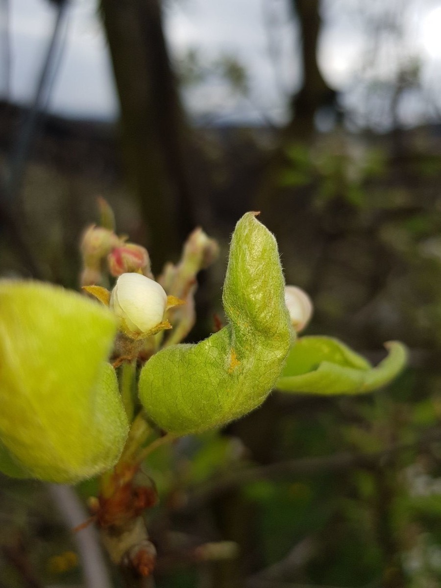 Kod krušaka se, u cvetanju mogu videti i simptomi napada grinja. Listovi koji okružuju pupoljak kad su zatvoreni imaju na sebi crvene izrasline, a kada su otvoreni - crvene tačkice.