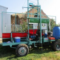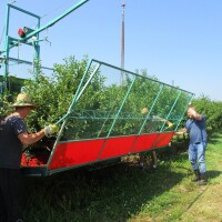 "Mašina i pet ljudi koji je opslužuju za sat vremena i 15 minuta oberu višnju u jednom redu. Normalnim tempom, sa deset sati rada dnevno celokupna berba bila je gotova za tri dana. Sa samo osam ljudi. Mašina za berbu višnje i šljive je domaće proizvodnje, firme iz Žablja. Za tri dana posla je radila besprekorno," kaže Dragiša.
