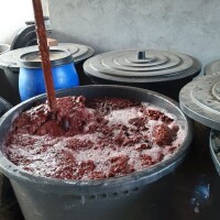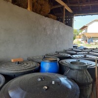 Dok to radi, stigne i da u susednoj prostoriji promeša šljive i kruške koje se nalaze u fazi fermentisanja u velikim sudovima zapremine od po 500 litara.