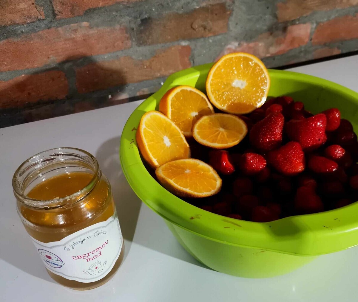 "Potrebno je 3,5 kilograma jagoda, 1,5 kilograma meda, dva vanila štapića, dve pomorandže (iseckano na krugove), 10 litara lozovače i dva litra redestilisane vode. U posudu se ubace jagode i preliju medom, odstoji tri dana tako i onda se nalije rakija, lagano promeša tako da jagode ostanu cele. Zatim se dodaju pomorandže i vanila štapići. Svakog drugog dana se lagano promeša, posle četrdeset dana se dolije redestilisane voda, lagano promeša i ostavi da odstoji još par dana", objašnjava naš sagovornik i dodaje da je poslednji korak pripreme pre flaširanje pretakanje tečnog dela u drugu posudu.