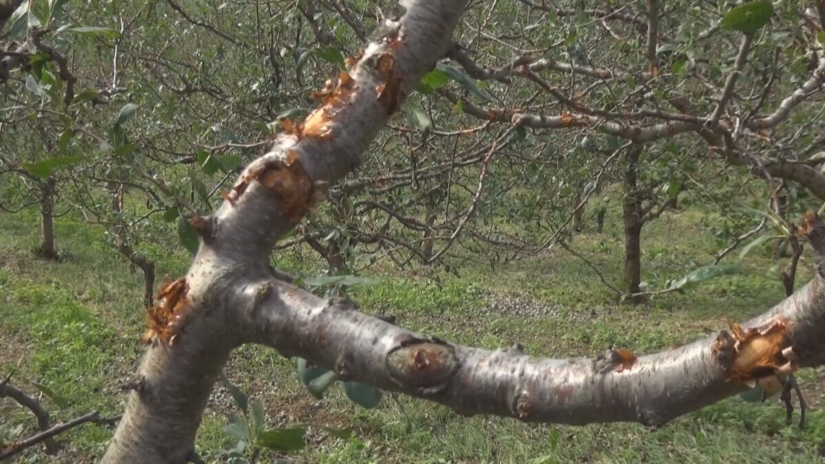 "Usled udaraca krupnog grada došlo je do opadanja lisne mase od 70 do 90 odsto, guljenja kore na jednogodišnjim i višegodišnjim granama, kao i oštećenjima na deblu", kaže stručni saradnik za voćarstvo u PSSS Valjevo Srđan Stanojlović.