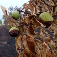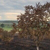Na nekim krošnjama ima još pokoji zeleni list, ali je pitanje hoće li preživjeti jer je vatra zahvatila stabla pri zemlji. Kora je izgorela i tu je prekinut protok sokova, govori nam vlasnik jednog od izgorelih voćnjaka.