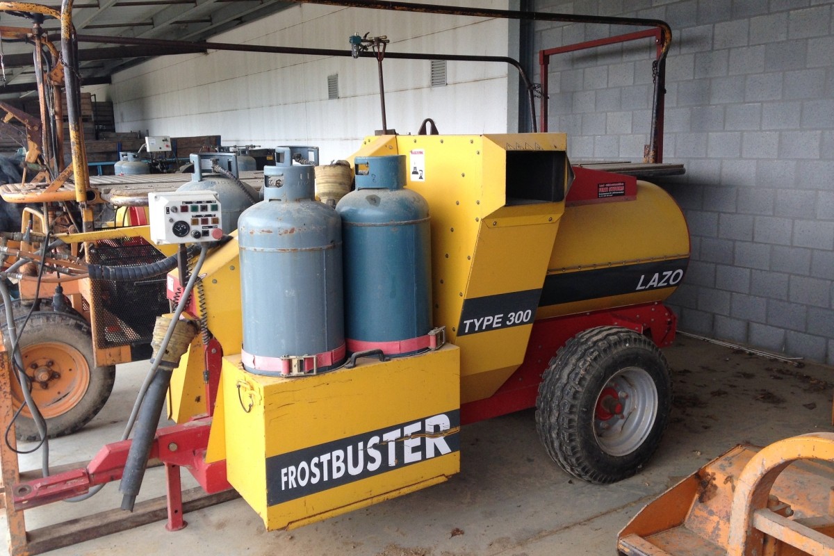 Odbraniti voćnjak od prolećnog mraza najčešće je ipak lakše, nego odbraniti vinograd, i to stoga što su razmaci sadnje najčešće veći u voćnjacima nego u vinogradima, a i reljef u vinogradima češće je strmiji nego u voćnjacima. Tu se pri odbrani od mraza misli na korištenje traktora i vučenog priključnog transportnog grejača (heater ili Frostbuster).